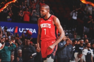 此役火箭球星杜蘭特出場45分鐘24投13中,三分8中2、罰球7中7砍下35分5籃板6助攻1蓋帽,有5失誤,正負值+4。