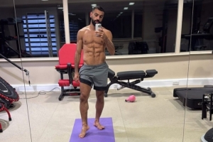 照片中的薩拉赫,身材相當(dāng)健碩,腹肌棱角分明。