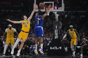 至此,快船戰(zhàn)績(jī)來(lái)到了4勝10負(fù)(西部第12);而同城的湖人隊(duì)目前戰(zhàn)績(jī)是10勝4負(fù)(西部第4)。