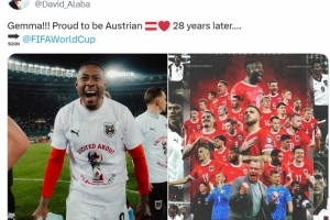 奧地利球員阿拉巴也在社媒曬出慶祝照片以及球隊晉級海報,配文寫道:“身為奧地利人我感到驕傲,時隔28年重回世界杯!”