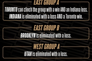 東部A組:若猛龍戰(zhàn)勝奇才且步行者不敵騎士,則猛龍晉級淘汰賽,步行者將被淘汰。