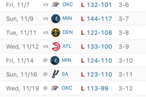 這波8連敗,國王場均丟128.5分,只有昨天對陣雷霆失分不到120。