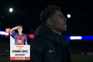 體育資訊11月23日訊 巴薩在本輪西甲4-0完勝畢巴,費(fèi)爾明在賽后被西甲官方評為全場最佳。