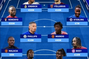 前鋒:塞梅尼奧(伯恩茅斯)5500萬歐、恩德里克(皇馬)3500萬歐、菲爾克魯格(西漢姆聯(lián))1000萬歐、斯特林(切爾西)700萬歐