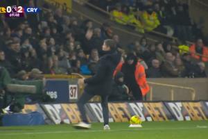 水晶宮在下半場6分鐘2球完勝狼隊,主帥格拉斯納在場邊激情慶祝第二球時差點滑倒,隨后他順勢轉(zhuǎn)圈握拳鼓勁。