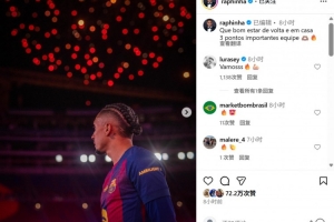 本場(chǎng)比賽也是巴薩回歸諾坎普球場(chǎng)首戰(zhàn),迎來(lái)傷愈復(fù)出的拉菲尼亞在社媒曬照寫道:“回家的感覺(jué)真棒!球隊(duì)取得關(guān)鍵三分”