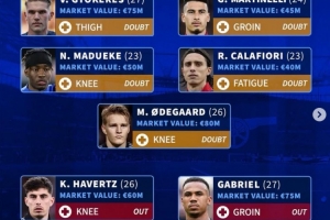體育資訊11月23日訊 阿森納將在本輪英超焦點戰(zhàn)對陣熱刺,《轉會市場》統(tǒng)計顯示隊內(nèi)最多可能有8人無法出戰(zhàn)。