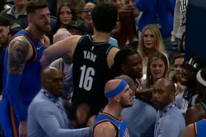 GIF-雷霆開拓者沖突 楊瀚森過來把哈滕勸走