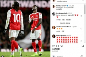 在社交媒體上,薩卡曬出了自己和上演帽子戲法的埃澤賽場同框照,他寫道:大家發(fā)揮創(chuàng)意,取個(gè)標(biāo)題吧!