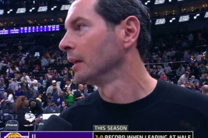 據(jù)統(tǒng)計,本賽季當湖人上半場領先時7勝0負,未嘗一敗,位列聯(lián)盟第三多。