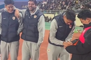 澤卡、馬德魯加、彭嘯來(lái)到了比賽現(xiàn)場(chǎng),與當(dāng)?shù)厍蛎曰?dòng)。