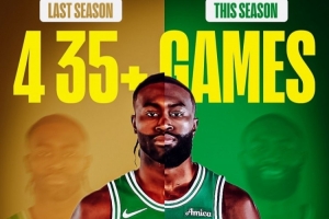 這也是本賽季布朗第四次單場得分達(dá)到35分(其中一場41分),而他上賽季一共才4次單場至少得分35分。