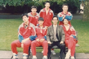 上世紀八十年代,郭玉佩(前排右二)與國青男籃出國比賽。前排右一為中國籃球名人堂成員鞏曉彬,后排右二為中國籃球名人堂成員胡衛(wèi)東。