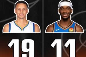 亞歷山大也在18場比賽中,完成了11次三節(jié)打卡。而庫里的73勝賽季,三節(jié)打卡次數(shù)為19次。以目前雷霆的強勢表現(xiàn)來看,亞歷山大有望超越庫里這一數(shù)據(jù)。