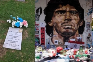 如今,馬拉多納長眠于布宜諾斯艾利斯貝拉維斯塔花園私人墓地,與他的父母朵娜·托塔和老迭戈相伴。在那里,一塊簡樸的墓碑守護(hù)著這位阿根廷球星的遺骸。由于一些不法分子企圖盜竊,這塊墓碑不得不頻繁更換。無論他們是否得逞,都無法抹去他在全世界足球迷心中的記憶。