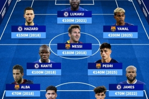 前鋒:埃登·阿扎爾(切爾西,1.5億,2018年)、羅梅盧·盧卡庫(切爾西,1億,2021年)、拉明·亞馬爾(巴塞羅那,2億,2025年)