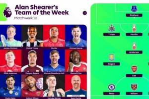 體育資訊11月26日訊 英超第12輪戰(zhàn)罷,阿蘭·希勒評本輪最佳陣容,皮克福德、埃澤、摩根·羅杰斯在列。