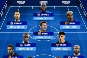 體育資訊11月26日訊 北京時(shí)間今晚凌晨4點(diǎn),歐冠聯(lián)賽階段第5輪,切爾西主場(chǎng)迎戰(zhàn)巴薩。賽前,德轉(zhuǎn)評(píng)出這兩支球隊(duì)歷史最貴11人陣容,其中梅西、亞馬爾領(lǐng)銜鋒線,阿扎爾、盧卡庫(kù)在列。這套陣容的總身價(jià)達(dá)12.5億歐元。