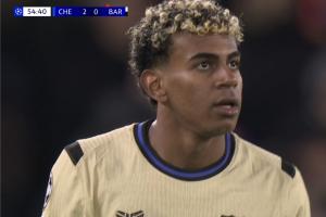 體育資訊11月26日訊 歐冠聯(lián)賽階段第5輪,切爾西主場迎戰(zhàn)巴塞羅那,比賽第55分鐘,埃斯特旺連過多人爆射得手,切爾西2-0領(lǐng)先,隨后鏡頭立刻給到了亞馬爾。