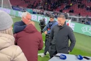 此役賽前,本菲卡主帥穆里尼奧來(lái)到場(chǎng)邊,與評(píng)述比賽的昔日弟子斯內(nèi)德?lián)肀Ш选?/p>