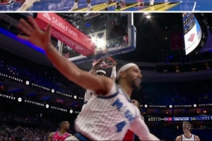 對此,ESPN評論道:“薩格斯意欲復(fù)刻韋德和詹姆斯的經(jīng)典空接??。”