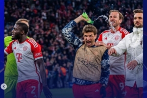 2017年3月十六強戰(zhàn)次回合:沃爾科特首開記錄,科斯切爾尼染紅。萊萬扳平比分,羅本、道格拉斯·科斯塔建功,比達爾雙響,拜仁再次5-1大勝。