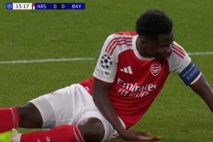 體育資訊11月27日訊 阿森納vs拜仁第16分鐘,諾伊爾出擊解圍,薩卡鼻子被撞出血,隊醫(yī)進(jìn)場處理!