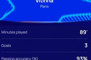 下一篇: 維蒂尼亞本場(chǎng)數(shù)據(jù):上演帽子戲法,5射3正,2搶斷,評(píng)分9.9分