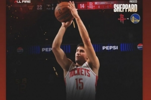 賽后阿門·湯普森在INS上轉發(fā)了今天謝潑德的數(shù)據(jù)海報。