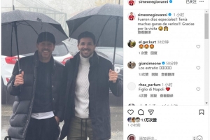 西蒙尼看望自己的兒子吉奧瓦尼·西蒙尼,后者社媒曬出父子合照,配文:“這真是無比特別的時光,我一直都渴望與你們相見,感謝你們的到訪。”
