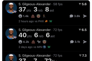 賽后美媒Real Sports曬出了亞歷山大近三戰(zhàn)數(shù)據(jù),寫道:“SGA應(yīng)進(jìn)入歷史級(jí)別得手的討論?!?/p>