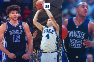 這是他賽季前8場比賽中,第二次砍下單場35分。自1985-86賽季NCAA引入投籃時間限制以來,杜克大學(xué)歷史上只有三位球員做到過單賽季多次單場得分35+。另外兩位是雷迪克(兩個賽季做到,05-06賽季更是單賽季7次、其中包括3場40+)、杰伊·威廉姆斯(注:圖中標注賽季有誤,應(yīng)為01-02賽季)