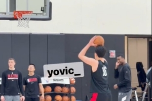 據開拓者隨隊記者@yovic_報道,今天訓練尾聲時,楊瀚森和里斯還留在場上補了幾組投籃。