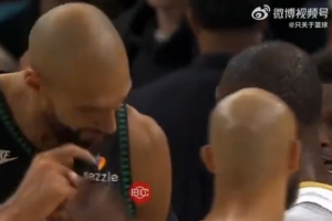賽后發(fā)生有趣一幕,戈貝爾指著自己的腦門,對杰倫·布朗面授機(jī)宜,大致意思是別整發(fā)際線粉了,像我這樣多好。有趣的是,在這過程中另一個大光頭德里克·懷特從他倆身前走過。