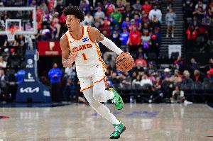 本場比賽杰倫·約翰遜出戰(zhàn)45分鐘,21投10中,三分8中4,罰球22中17砍下41分14籃板7助攻1搶斷1蓋帽,雖有6失誤但瑕不掩瑜。