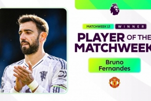 體育資訊12月2日訊 英超官方消息,曼聯(lián)中場B費當選第13輪英超的最佳球員。