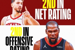 火箭媒體rocketsnationcp寫(xiě)道:進(jìn)攻前三,防守也前三?這種在聯(lián)盟中極為罕見(jiàn)的數(shù)據(jù)組合通常意味著...奪冠熱門(mén)。