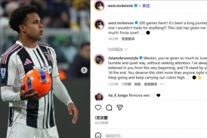 麥肯尼寫(xiě)道:“在這里的200場(chǎng)比賽?。∵@段旅程很漫長(zhǎng),但我不會(huì)用任何東西去交換!這家俱樂(lè)部給了我太多!Forza Juve??!”