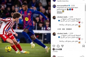 拉什福德社媒曬出比賽照片,并寫道:“重要的勝利,出色的團(tuán)隊(duì)表現(xiàn)。加油!”