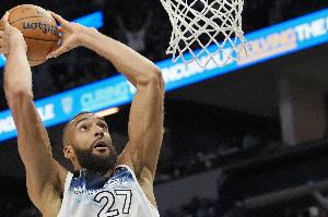 第一節(jié),森林狼中鋒戈貝爾高效發(fā)揮,打滿12分鐘3投3中,罰球4中4拿到10分6籃板1助攻1搶斷,正負值+6。