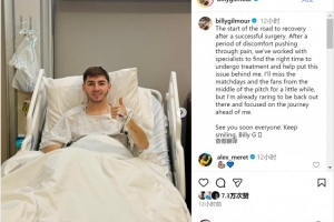 “接下來的一段日子,我會想念比賽日和球迷們,但我已迫不及待重返賽場,并將全力專注于眼前的康復征程。大家很快再見。保持微笑,比利(吉爾莫)!”
