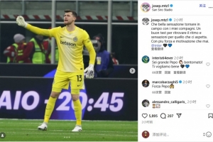 體育資訊12月4日訊 國際米蘭門將何塞普·馬丁內(nèi)斯在Instagram發(fā)文,談到球隊晉級意大利杯八強。