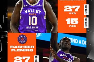 本場比賽太陽兩名新秀均發(fā)揮出色,10號(hào)秀馬盧阿奇14投10中,三分1中0,罰球5中5,砍下27分15籃板1助攻4蓋帽;次輪狀元弗萊明18投11中,三分9中4,罰球2中1,砍下27分13籃板2助攻3搶斷;另外達(dá)米恩·鮑18投9中,三分7中3,罰球4中4,砍下26分5籃板8助攻4搶斷1蓋帽。