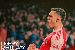 阿森納官方社媒曬出為特羅薩德制作的生日海報(bào),配文:“生日快樂(lè),萊安德羅!”