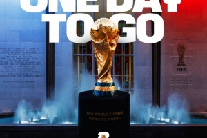 世界杯官方社媒曬出倒計(jì)時(shí)一天海報(bào),預(yù)熱世界杯抽簽儀式,大力神杯出鏡。