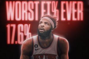 米切爾·羅賓遜本賽季總計(jì)17罰3中,罰球命中率17.6%