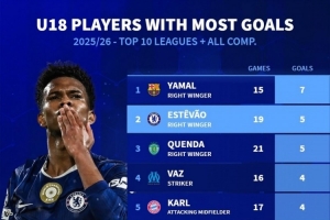 本賽季前十聯(lián)賽U18球員進(jìn)球榜:亞馬爾7球居首,埃斯特旺5球次席