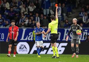 體育資訊12月06日訊 今天凌晨結(jié)束的西甲第15輪,皇家奧維耶多主場0-0戰(zhàn)平馬洛卡,比賽最后時刻40歲老將卡索拉因鏟球動作過大吃到紅牌。