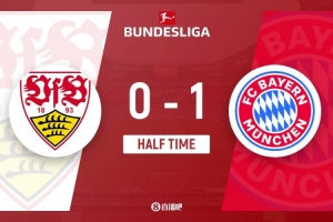 傷停補(bǔ)時8分鐘。上半場比賽結(jié)束,拜仁1-0斯圖加特。