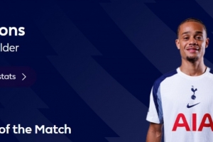 本場比賽哈維·西蒙斯傳射建功,賽后也當(dāng)選英超官方球迷票選全場最佳球員。